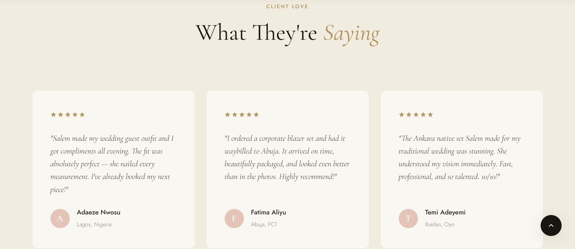 - Testimonials section